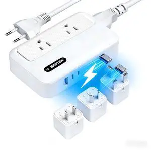 220V to 110V Converter with USB C 35W, Voltage Converter US to Europe for Hair Straighteners, Universal Travel Adapter with 2 USB C Ports & 1USB-A Port, Power Plug Adapter UK/US/AU/EU