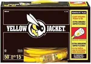 Cablectric 50 Ft Outdoor Extension Cord - 10/3 SJTW Heavy Duty Yellow 10 Gauge Lighted Electrical Cable with 3 Prong Grounded Plug