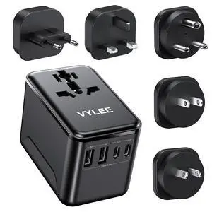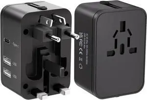 Universal Travel Adapter, International Travel Plug Adapter with 3 USB-C 2 USB-A Ports 70W, All in One Portable Socket, for USA, UK, EU, AU 224+ Countries (Black)