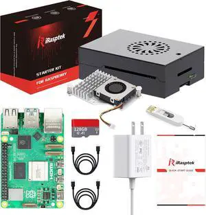 iRasptek Starter Kit for Raspberry Pi 5 RAM 8GB-128GB Edition of OS-Bookworm Pre-Loaded (Aluminum Case)