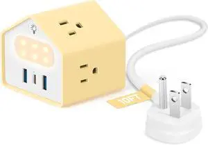 Handy Power Strip with Night Light - Yolk-Yellow Power Strip Surge Protector - 20W USB C Charging Station - 4 Outlets + 3 USB Ports for Desk, Nightstand, Couch, Makeup, Electronic Accessories