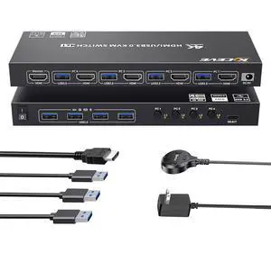 HDMI KVM Switch 1 Monitors 4 Computers 4K@60Hz, Simulation EDID, 4 Port KVM Switch HDMI Share 1 Monitor and Keyboard Mouse Printer, with Desktop Controller, 4 USB 3.0 Cables and 12V Power Adapter