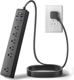 6-Outlet Surge Protector Power Strip Clamp Mount 7 Feet Cord with 2.4A 2-Port USB Charging Station