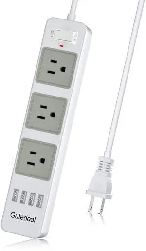 Power Strip with USB, 4 Outlet 3 USB Ports (3 USB-A) Power Strip Cube, 10 ft Extension Cord, Flat Plug Surge Protector, Kitchen, Home, Office, Travel, White