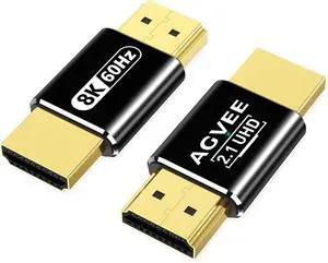 2 Pack 8K Male to Male HDMI Adapter 8K@60HZ HDR HDMI 2.1 Coupler Converter Extension Connetor Aluminium Alloy Shell for HDTV Stick Switch Xbox One PS4 PC Black