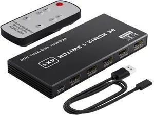 8K@60Hz HDMI Switch 4 in 1 Out Aluminum Support 4K@120Hz HDR + HDCP 2.3 CEC HDMI 2.1 Switcher Splitter with Power Adapter Compatible with PS5/4/3 Xbox Nintendo Switch TV Fire Stick