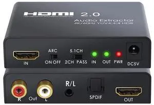 HDMI Audio Extractor HDMI 2.0 to Optical TOSLINK SPDIF RCA L/R 3.5mm Headphone HDMI 2.0 Audio Extractor Support 4K 60Hz YUV 4:4:4 and HDR Adapter eokCXOY