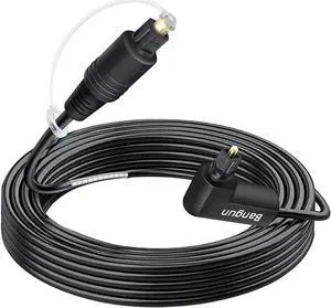 Armored 90 Degree Optical Audio Cable, 50 feet Fiber Optic Cable, Slim Optical Cable, Digital Optical Audio Toslink Cable Compatible with Sound Bar, TV, PS4, Xbox, Samsung, Vizio