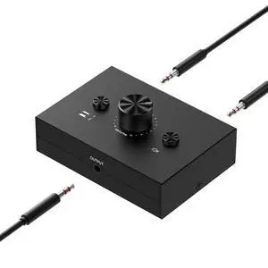 3.5mm Stereo Audio Switch (2 in 1 Out) Audio Switcher Passive Speaker Headphone Manual Selector Splitter Box Audio Sharing for PC Phone Laptop Headphone