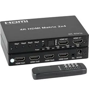 4K 2x4 HDMI Matrix Switch with 3.5mm Stereo Audio Extractor and Audio Optic Output, 2 in 4 Out Video Switcher&Splitter, Support HDMI 2.0 4K@60Hz