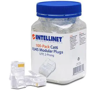 RJ45 23AWG Cat6a Cat6 Connector Gold Plated 8P8C Pass Through Ends UTP Network Plug for Unshielded Twisted Pair Solid Wire & Standard Cables ^^ Transparent Passthrough Ethernet Connector (100Packs)