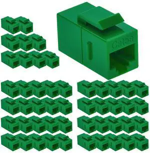 Beszin Cat.5E RJ45 Inline Coupler with Keystone Latch, Female-Female (50-Pack, Green)