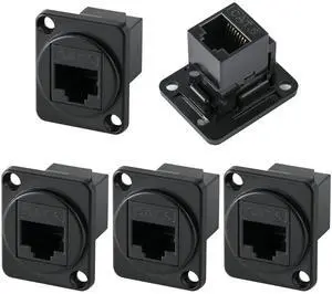 5PCS Panel Mounting RJ45 Cat6 8P8C Ethernet Connector Black Zinc Alloy Housing Double Head Coupler Adapter Female to Female Extension Adapter