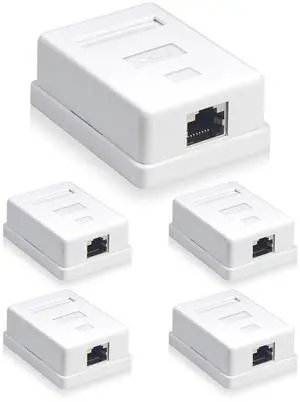 Cat6 RJ45 Surface Mount Box Shielded 1-Port, Compatible with UTP Cat6/Cat5e/Cat5 Stranded or Solid Network Cables, 5-Pack, White