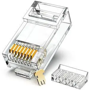 Cat6 RJ45 Connectors, 100-PACK Cat6 RJ45 Ends, Ethernet Cable Crimp Connectors UTP Network Plug for Solid Wire and Standard Cable, Transparent