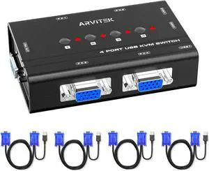 KVM Switch VGA 2 Port, KVM Switch Console with 3 USB Hub + 2 in1 Cables + Desktop Selector