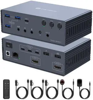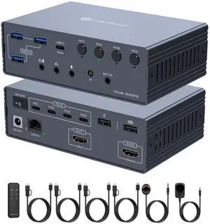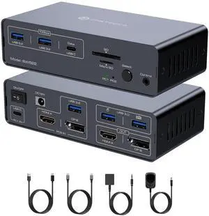 Dual Monitor DisplayPort 1.4 KVM Switch 8K@30Hz 4K@144Hz 2 in 2 Out, DP1.4 KVM Switch and 4 USB 3.0 Port for 2 Computers,Backnward Compatible DP1.2 with DP+USB Cables and Wired Controller
