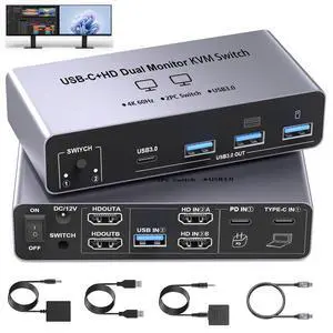 • Type: Dual Monitor USB C HDMI KVM Switch