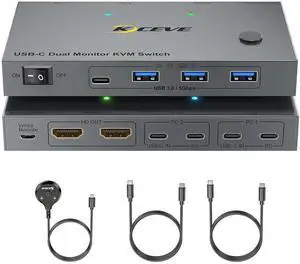 AUTYUE USB C KVM Switch for 2 Monitors 2 Laptops with PD Charging Function, Dual Monitor USB Type-C HDMI KVM Switcher Supports 4K@60Hz for 2 PCs 2 HDMI Monitors, No Driver Required