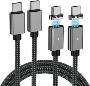 100W Magnetic Fast Charging Cable, USB C to USB C Cable(2 Pack,5/6.6FT), 480Mbps Data Transfer, for MacBook Pro/Air, iPhone 16 15 Pro Max, iPad, Galaxy S22 Ultra, Pixel