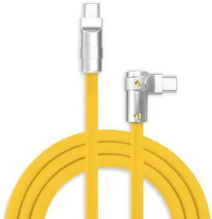 chubbycable FlexElbow 90 Degree 240W Fast Charging Cable Right Angle USB C Cable Silicone Charging Cord Compatible with iPhone 17-15 Series iPad, Yellow, Type-C to Type-C, 6.6FT
