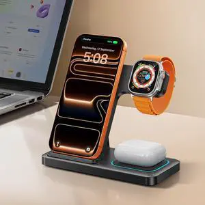 DUMTERR 3 in 1 Charging Station for Apple, Wireless Charger for iPhone 17 16 15 14 13 12 11 Pro Max, Foldable Wireless Charging Station for Multiple Devices for Apple Watch Ultra & Airpods Pro 4 3 2