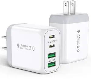 [2-Pack] USB C Wall Charger,60W 5-Port PD Fast USB C Charging Block,2USB C+3USB A Multiport Plug,Type C Power Adapter Brick Cube for iPhone 17/16/15/14/13/12/Pro Max/XS,iPad,for Switch,Samsung,Ultra 2