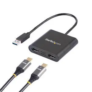 USB 3.0 to Dual HDMI Adapter, USB to 2x HDMI Monitor Converter for Windows, TAA (no support for macOS/ChromeOS/Linux)