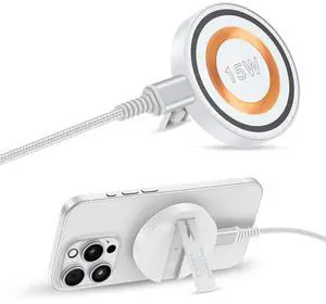 Magnetic Charger for Android Samsung Wireless Charger Fast Charging for Samsung Galaxy S24 Ultra S24+ S24 S23 S22 S21 S20 S10, Magsafe Charger Kickstand for iPhone 17 16 15 Pro Max Plus 14 13 12