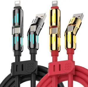 MFish 240W 4-in-1 Universal USB Charging Cable [2 Pack, 6.6ft] Fast Charger Cord with USB-A, Dual USB-C & Lighting, for iPhone 14/15/16/17 Series, iPad & MacBook & More (2PACK, Black+Red, 6.6Ft)