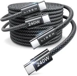 USB C to USB C Cable Fast Charging Cords 240W Type C Charger Fast Charging Cord Type C Cable for iPhone 16 15 iPad MacBook Pro Air Samsung S25 Switch,10ft+10ft/2 Pack/Black