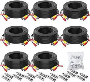 8 Pack 50ft/15M Video Power Cable, BNC Extension Security Camera Cable Wire for CCTV Surveillance DVR System, Included 16 x BNC Connectors and 100pcs Cable Clips