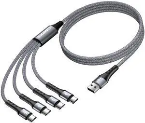 Multi USB C Cable Fast Charging [4FT/2 Pack] QC 3.0(3A) USB C Splitter Cable 4 in 1 Charger Cord with 4 Type C Ports for iPhone 17/16/15 Series iPad Air/Pro Galaxy S25 Pixel PS5