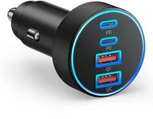 Car Charger USB C, 4-Port 90W Super Fast Charging Car Phone Charger Accessories Dual USB-C & USB-A Cargador Carro Cigarette Lighter Adapter for iPhone 17 16 15 14 13 12, iPad, Galaxy, Tablet, Android