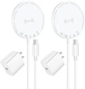 2 Pack 15W Magnetic Wireless Charger Fast Charging Pad with 20W Adapter and 6FT Cables for iPhone 17/16/15/14/13/12 Series/AirPods 3/2/Pro Apple Chargers for Travel/Office/Home