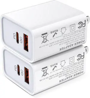 European Charger 2Pack EU Fast 20W USB C Charger Block Travel Plug PD Power Adapter for iPhone 15/14/14 Pro/14 Pro Max/13 Pro Max/13 Pro/13 Mini/13/12/11 Pro Max/XS Max/XR/X/8/SE 2022,Samsung,Android