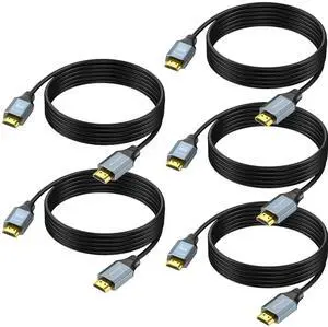 10 FT HDMI Cable 5-Pack, High Speed 4K HDMI Cord 10FT, HDMI to HDMI 2.0 Cable with 4K@60Hz, 2K@165/144/120Hz,1080P, 3D, HDR, HDCP 2.2, ARC & CL3 Rated | for Laptop, Monitor, TV, Game, Soundbar & More