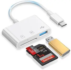 USB C to SD Card Reader, SD Card Adapter with SD MicroSD USB 3 Ports, USBC Memory Card Reader for iPhone 15 16, iPad, Mac, MacBook Pro/Air, Android and More USB-C/Type C Devices