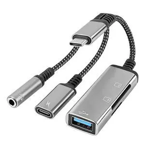 4-in-1 USB C to 3.5mm Headphone Audio Adapter with 60W PD Fast Charging, USB OTG Dongle & TF/SD Card Reader, Hi-Res DAC Splitter Compatible with iPhone15/16, iPadPro, MacBook, Galaxy S23 and most