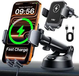 15W for MagSafe Car Mount Charger - [20X Strong Magnets] Wireless Car Phone Holder Charger, Magnetic Phone Holders for Car Vent Dash Accessories for Women Men for iPhone 17 Pro Max Black