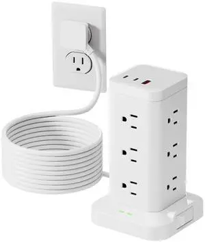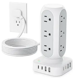 Tower Power Strip Surge Protector with 16 Outlets and 5 USB Ports (2 USB-C),15FT Extension Cord with Multiple Outlets,Heavy Duty Charging Station,Home Office Dorm Room Essentials. No Wireless Charging