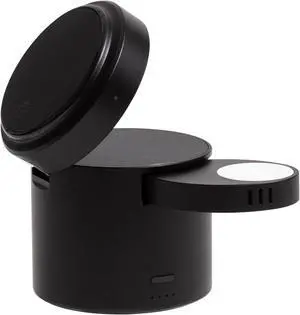 AT&T Essential 3-in-1 Portable Power Drum Qi2 Wireless Charger and Powerbank Compatible with iPhone 15 14 13 12 Series Magnetic Fast Charging Stand with Watch Charger USB-C Out Travel Hub Black