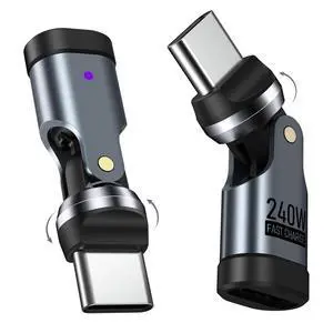 USB C Magnetic Adapter 240W(2Pack), 16PIN USB C 90 Degree Adapter/C Right Angle Adapters/360°Rotating C to C Adapters for 1Phone 17/16/15, 1Pad Series, Tablet, Laptop