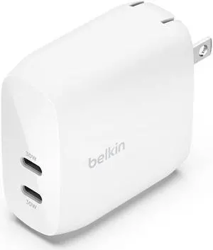 Dual USB C Charger Block 60W w/PPS Super Fast Charging?- Galaxy S25 iPhone 17 Air Pro Pro Max iPad MacBook Air AirPods Google Pixel 10 Nintendo Switch 2 etc - White