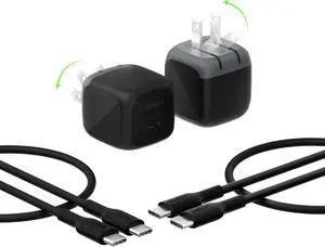 USB C Charger Block 45W (2 Pack) - USB C Cable Included - PD3.1 PPS Fast Charging - Galaxy S25 S24 iPhone 17 Air Pro Pro Max Google Pixel 10 Nintendo Switch etc - Black