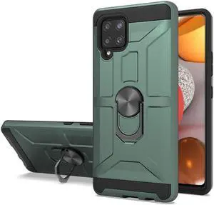 Dynamic Dual Layer Hybrid Case with Ring Holder Stand for Samsung Galaxy A42 5G - Midnight Green