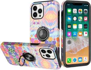 360 Rotating Ring Grip Hybrid Case for iPhone 14 Pro - Watercolor Flowers