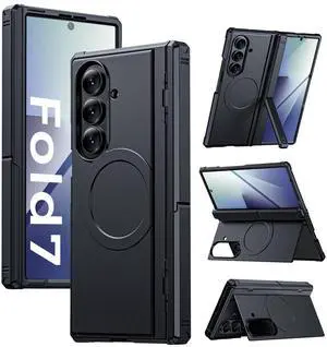 for Samsung Galaxy Z-Fold-7 Case: Magnetic Shockproof Rugged [Dual-Stand] [Hinge Protection] [Fit for Magsafe] Durable Silicone Matte Armor Protective Cover for ZFold 7 5G 2025 (Black)