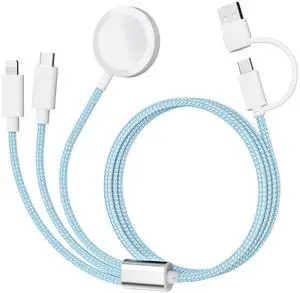 Charging USB C Watch Phone Charger 3 in 2 Cable, Compatible with Apple Watch Ultra SE Series 1-11, Universal Travel Multi Devices All in One Cord, 4FT/1.2M-Blue