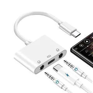 USB C to 3.5mm Audio Adapter, 3-in-1 Aux to USB C Headphone Splitter, 3.5mm to USB C iPhone headphone adapter with PD Fast Charging Compatible with iPhone 15/16/17, iPad Pro, Galaxy S25/S24, and More